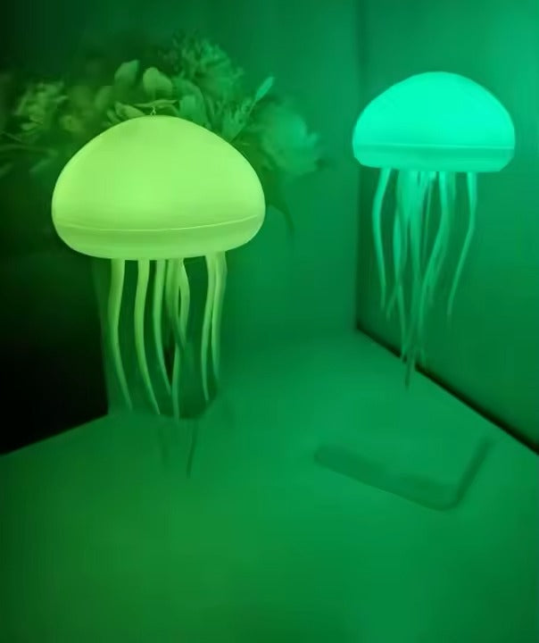 Lámpara de noche flotante RGB recargable con sensor táctil para dormitorio y sala de estar. Iluminación ambiental relajante e hipnótica controlada por voz con medusas y pies danzantes. Medusas en movimiento.
